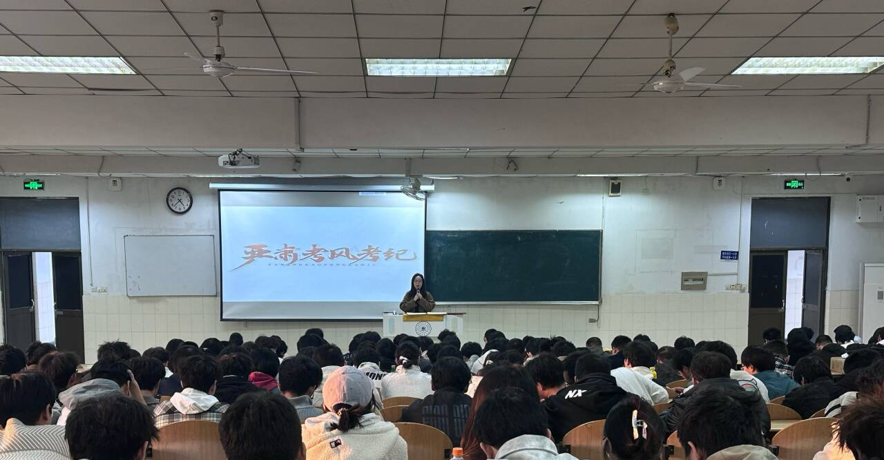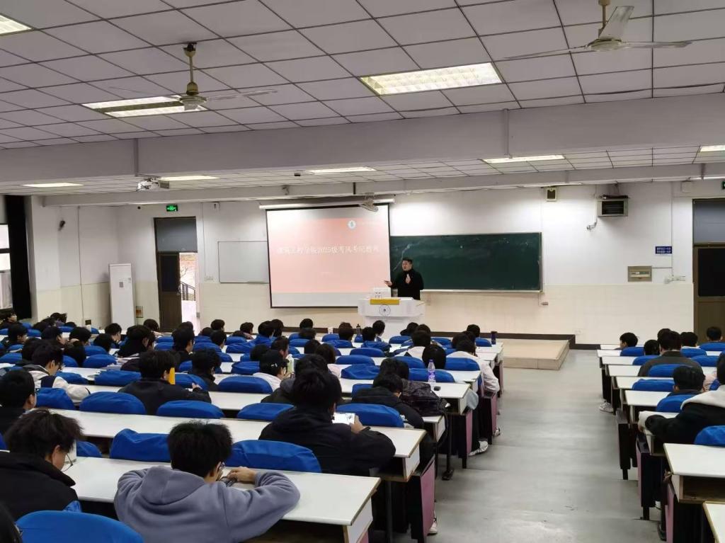 为深入贯彻落实立德树人根本任务,进一步强化学生日常管理,严肃考风考纪,引导学生树立诚信意识,杜绝考试作弊行为,营造风清气正、严谨笃学的优良学风院风,建筑工程学院各年级于近期组织召开考风考纪教育大会。各年级辅导员、全体本科生参加。
