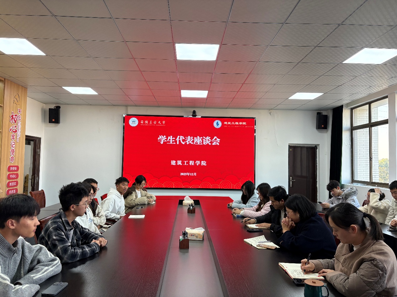为全面了解学生学习状况,及时发现并解决教育教学过程中存在的问题,进一步加强教学过程管理,搭建师生高效沟通桥梁,深入了解学生诉求,推动学风建设,2025年12月9日,建筑工程学院于建工北楼310会议室组织召开2025-2026学年第一学期期中教学学生座谈会。学院教学督导组老师,各年级辅导员、学生代表参加。学院团委副书记、2024级辅导员朱珉琨主持会议。