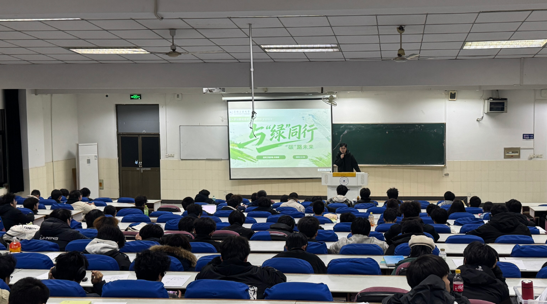 为深入学习贯彻党的二十届四中全会精神,推动绿色发展理念在青年学子中扎根,12月25日,建筑工程学院第六届辅导员宣讲团成员朱珉琨在阶教102开展题为《与“绿”同行,“碳”路未来》的理论宣讲。学院各年级学生参与学习。