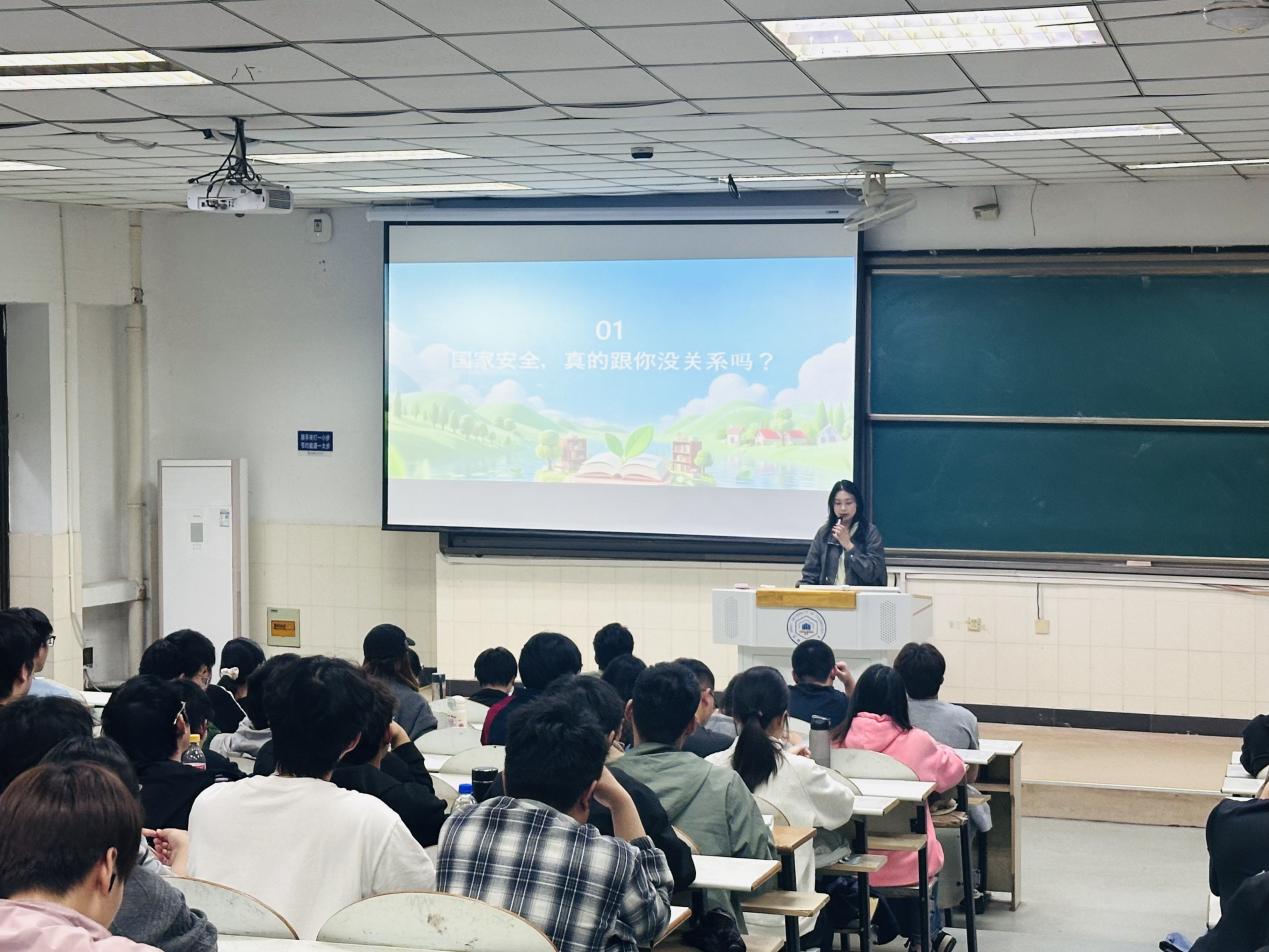 会上,辅导员葛丽君围绕总体国家安全观的核心内涵,结合当前复杂的安全形势,系统讲解了政治、网络、生态等重点领域安全知识,并普及了《中华人民共和国国家安全法》《中华人民共和国反间谍法》等法律法规,强调“国家安全,人人有责”。