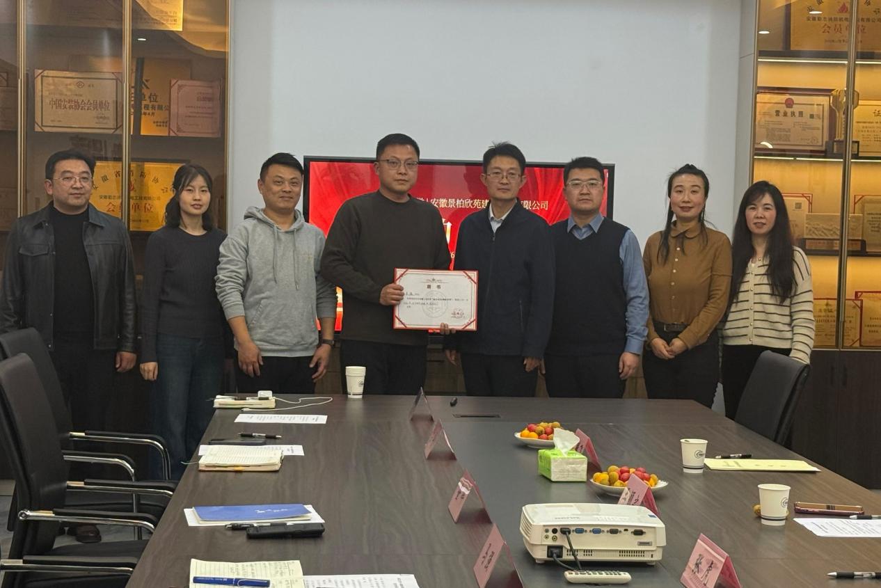 在安徽景柏欣苑建筑科技有限公司,公司总经理马强对张虎一行到访表示热烈欢迎,并全面介绍了企业发展历程、核心业务领域及未来发展规划等。随后,张虎详细介绍了学校及建筑工程学院的办学特色、学科建设成果和毕业生就业情况。在座谈交流环节,双方围绕人才培养、实习就业、产学研合作等展开深入探讨。最后,举行了“就业创业领航导师”荣誉证书颁发和“实习基地签约暨授牌”仪式。