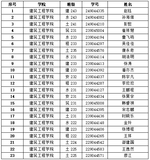 根据《中国共产主义青年团章程》《关于加强新形势下发展团员和团员管理工作的意见》中有关规定及安徽工业大学团委发展团员工作相关要求。经学生自愿提出申请、团支部推荐、建筑工程学院团委审议通过,认为赵钰等23位同学符合团员发展条件,确定为新团员发展对象。现将名单公示如下: