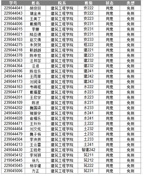 根据安徽工业大学《关于进一步贯彻落实学生体质健康测试工作的实施意见》(教学{2024}114号)的要求,由学生本人提出申请,校体育部审核,现将建筑工程学院2025-2026学年体测免测情况进行公示。